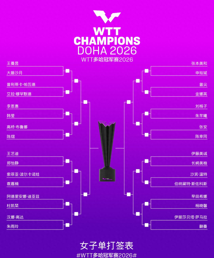 赛事的第一个焦点,无疑落在了世界排名第一的孙颖莎的缺席上,根据WTT官方在2025年12月29日的公告,孙颖莎正式退出2026WTT多哈冠军赛,其名额由中国香港名将杜凯琹递补,孙颖莎的退赛源于此前WTT香港总决赛半决赛中出现的身体不适,她也因此未能参加后续的乒超联赛总决赛,她的缺阵,不仅让女单冠军的归属悬念大增,也使得中国队的卫冕重任更多地压在了其他几位主力队员肩上